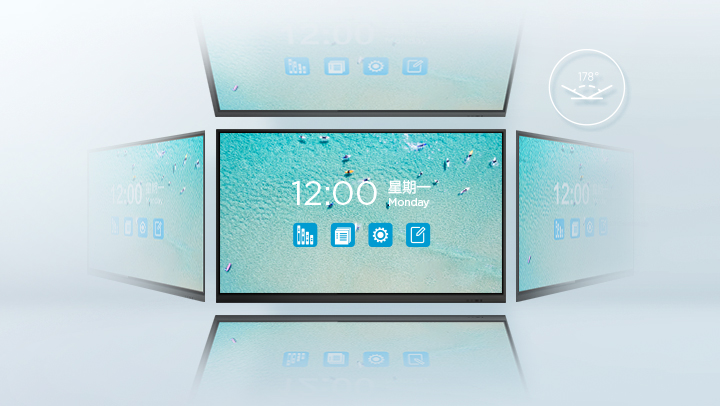 Covering popular sizes from 15.6 inches to 105 inches, touch display products feature a wide viewing angle, wide operating temperature range, high brightness, multi-point and multi-pen capacitive touch, and support fluent writing. They are widely used in schools, governments, large and medium-sized enterprises, start-ups, hospitals and the like, to facilitate teaching, meetings, information exchange, displays, telemedicine, etc.